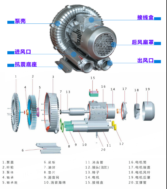 1、當(dāng)氣泵噪音變大時(shí),檢查全空氣渦流氣泵泵體內(nèi)是否有雜物。如有,打開(kāi)風(fēng)機(jī)外殼,清除內(nèi)部雜物;檢查葉輪是否卡滯,重新組裝,排除故障。然后檢查軸承是否損壞。如有必要,可能需要更換軸承。